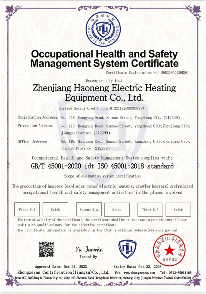 职业健康安全管理体系证书
